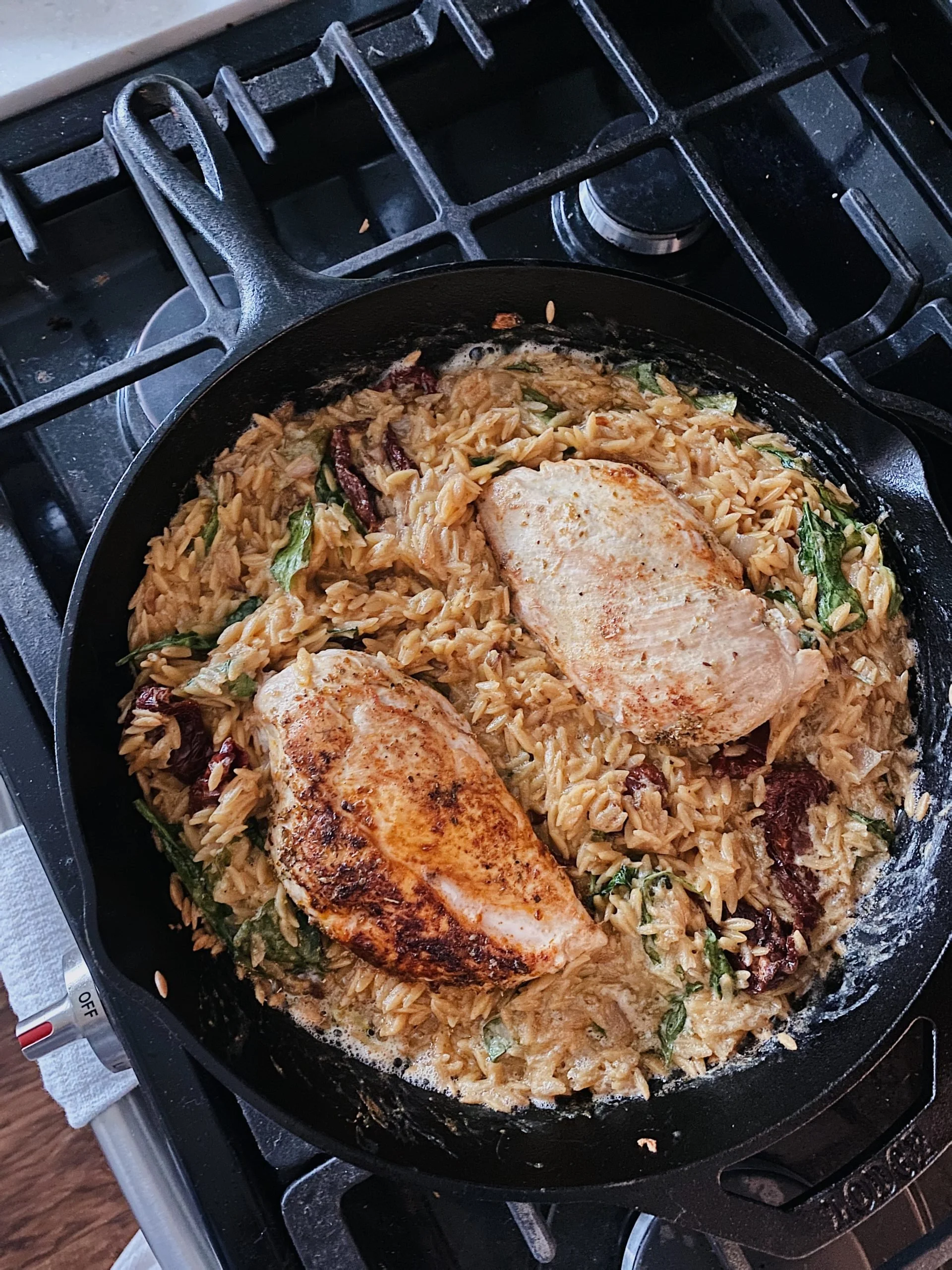 Creamy Sun-Dried Tomato Chicken Orzo Skillet